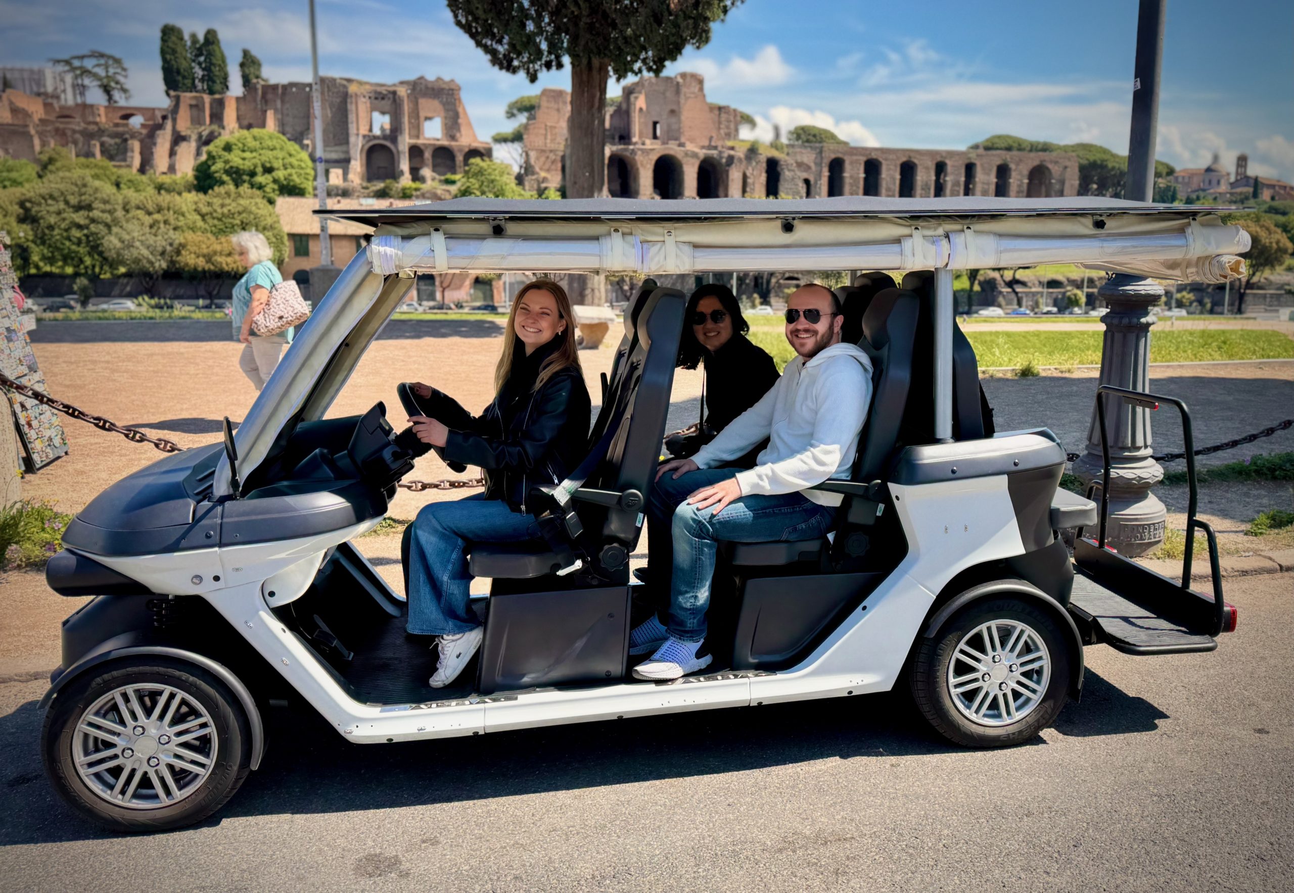 Sit back and relax in a brand-new golf cart as you explore Rome. Rain or shine, enjoy a feel-good audio-guide storytelling lovingly crafted by our entire team and played through high-quality JBL speakers, while your driver stays fully focused on the road. With locally beloved music accompanying your tour at special moments, unlock the true spirit of Rome — an experience you’ll feel, not just see! ✨