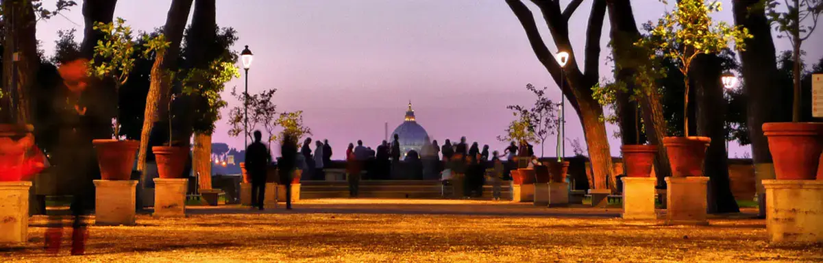 Discover the Aventine Hill, one of the original seven hills of Rome, located close to the city center, standing proudly in front of the Palatine Hill and just a leisurely stroll from the Colosseum. Today, it has transformed into a wealthy, leafy residential area, adorned with beautiful gardens and offering breathtaking views over the eternal city.